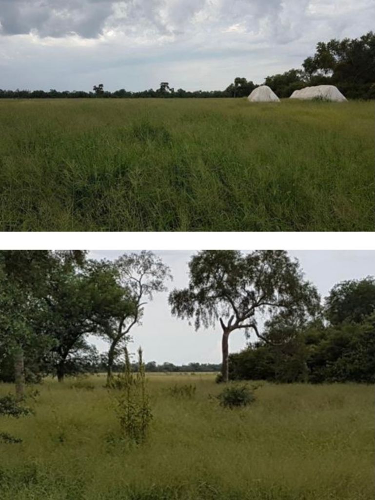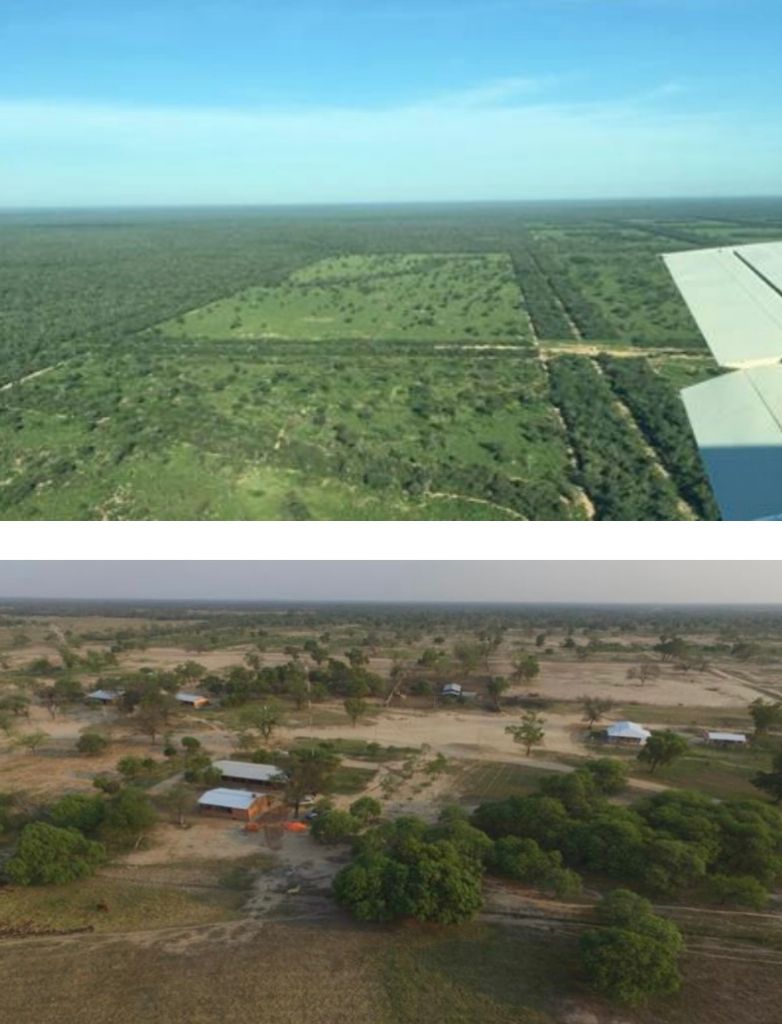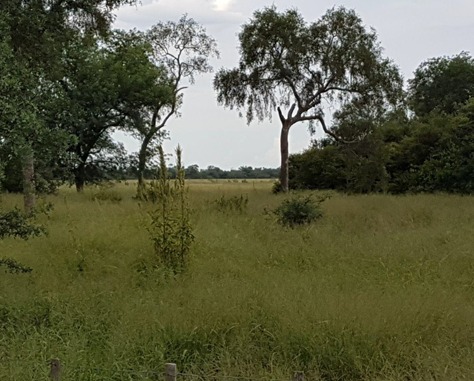 Estancia de 7.200 Hectáreas zona Pirizal, Departamento de Boquerón. Chaco Ubicada a 120 Km. de Neuland. Descripción: • Casa. • Corral. • Energía eléctrica. • 2.500 Hectáreas de Pastura implantada. • Habilitado para 1.500 hectáreas (Lo resaltado en color rosado es la pastura implantada, en color amarillo es a habilitar). Precio de venta: US$. 850.- por hectárea.