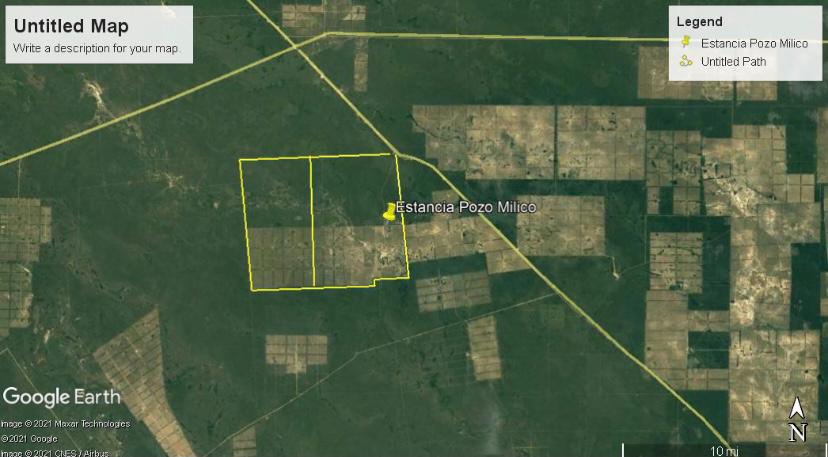 Estancia de 4.634 Hectáreas en zona Picada Lobrego - Pozo Milico (Ruta Bioceanica). Superficie total: 4.634 Hectáreas. Pastura y desarrollo: 2.237 Hectáreas. Descripción: • 9 rodeos con bebederos de hormigón circular (8.000 a 10.000 litros) con corralones redondos. • Potreros de 50 - 120 hectáreas aprox. Pastura Gatton Panic. • 2 pozos de 200 - 220 metros de profundidad. 2 Tanques Australianos y distribución de agua a todos los bebederos. • Luz eléctrica monofásica en todos los retiros. • Corral al costado de uno de los corralones, techado con brete, cepo, torin, 6 apartes. Sería el corral secundario del campo total, no tiene báscula ni embarcadero. • 3 retiros distribuidos en la propiedad, 2 tienen pozos artesianos con tablero, bomba, etc. Un retiro se encuentra donde está El Corral. • Alambrados en buen estado, portones de metal en su mayoría. • La propiedad puede contar con un acceso desde el acceso a Pozo Milito por el lindero norte, También podría solicitar servidumbre entre los vecinos al norte y salir directo a la Picada 500. En línea recta entre los dos vecinos son 7 km. a la Picada 500. • Luz trifásica desde cruce Don Silvio a 11 Km., proyecto entre los vecinos encaminados para acercar la luz hacia la propiedad. Precio de venta: US$. 1.200 por hectárea.