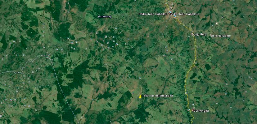 Estancia ubicada en el distrito de Pedro Juan Caballero. Superficie: 1.500 Hectáreas. Tiene 1.200 Hectáreas de pastura (250 Hectáreas mecanizadas) y 300 Hectáreas de bosque. Tierra apta para agricultura (Soja, Maiz, Girasol, etc.) y Ganadería. Precio de venta: US$. 3.500.- (Dólares americanos Tres mil quinientos) por Hectárea.