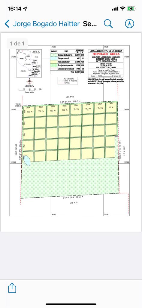 En venta Campo de 8.000 hectáreas en Mayor Pablo Lagerenza. Departamento de Alto Paraguay • 8.000 hectáreas de Monte. • Alambrado perimetral. • Tajamar. • Tinglado de 150 m2. (10 x 15). Uso alternativo de la tierra. • Bosque de reserva: 3.209,7 Has. • Campo natural: 43,7 Has. • Area a habilitar: 3.764,0 Has. • Franja de separación: 872,8 Has. • Caminos proyectados: 143,5 Has. Precio de venta: US$. 400 por hectárea.