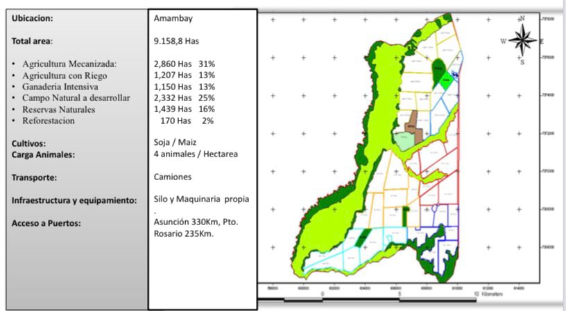 Estancia de 15.000 hectáreas en zona Toro Pampa. Departamento: Alto Paraguay. Zona: Toro Pampa. Infraestructura: • Cuenta con 8.025 hectáreas de pastura implantadas de Mombaza, Gatton panic y Tanzania. • El palmar que se encuentra al sur dentro del inmueble se puede utilizar para pastoreo también de campo natural. • Cuenta con alambrado perimetral e internos. • Cuenta con más de 30 tajamares que sirven de bebida a los animales y cuenta con 5 tanques australianos. • Cuenta con 1 corral completo con techo, cepo, báscula y embarcadero. • Cuenta con 1 casa patronal. • Cuenta con 3 casas para personales. • Cuenta con 1 galpón y hangar para avión. • Cuenta con corriente eléctrica de la ANDE. • Cuenta con 3 retiros. • Cuenta con pista de aviación. Precio: US$. 1.500.- por hectárea.