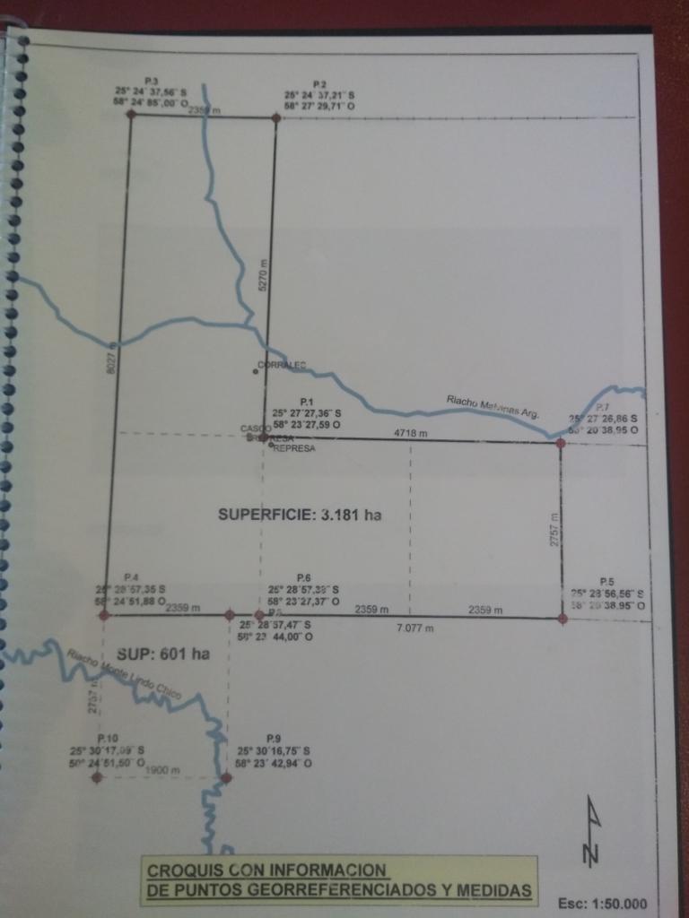 Estancia “ SANTA MONICA” Ubicación: Se encuentra ubicada a 30 Km al Sur de la localidad de Riacho He He, Departamento Pilcomayo, Provincia de Formosa. Acceso: Su acceso es por Ruta Provincial N° 2 (Asfalto), luego 16 km por Ruta Provincial 14 de tierra. Superficie: 3200 has Instalaciones: ⦁ Casco y vivienda de personal de material. ⦁ Galpón. ⦁ Energía Electrica trifásica. ⦁ Señal telefónica 4g Instalaciones Ganaderas: ⦁ Instalaciones ganaderas completas, manga completa con 4 bretes de apartes, toril, 2 corrales de encierre mas una plazoleta de 100 mts de diámetro unido a los corrales, todo hecho nuevo. ⦁ 3 piquetes contiguos a los corrales. ⦁ Otras instalaciones ubicadas en otro extremo de la estancia para tareas menores, manga, corral de encierre y dos apartes. Ambientes: ⦁ Palmares típicos de la zona y montes en perfecto estado de conservación, la madera existente en el campo data de 40/50 años. ⦁ Especies maderables: Quebracho, Guayacan, Palo Santo, Algarrobos. Etc. ⦁ Campos naturales con algunas zonas de bañados y muy buenas pasturas. Como por Ej: Pasto Clavel y otras especies naturales. ⦁ Muy rica Flora y fauna. Apotreramiento: - 14 potreros y 4 piquetes. Alambrados: ⦁ Alambrados internos y linderos en muy buen estado, de 4 hilos con madera dura y palmas. Aguadas: ⦁ Al Norte el Riacho Malvinas ( el ingles) y al sur el Riacho Monte Lindo Chico. ⦁ Además de contar con 9 represas de 4.000.000 lts, cercadas y con bajadero firme de madera. ⦁ En la estancia un tanque de 20 chapas con perforación con bomba sumergible. Caminos: ⦁ 22 km de caminos que unen todas las represas, incluido la entrada a la Estancia. ⦁ Puente sobre el Riacho Monte Lindo Chico, echo de madera dura, con estructura para camiones y maquinarias.