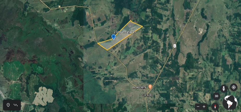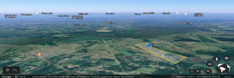 En venta Propiedad de 234 hectáreas, en Zona Ciudad de Carayao – Dpto. de Caaguazú Ubicada a 176 km. de Asunción. Superficie: 234 hectáreas. • Especial para reforestación, 120 metros sobre el nivel del mar. • A 4.000 metros de la ciudad de Carayao, sobre ruta asfaltada. • Alambrado perimetral • Casa patronal y personal. • Luz eléctrica Ande. • Servicio de telefonía celular. • Abundante agua. Precio de venta: US$. 2.250.- por hectárea. Obs: Se puede agregar 250 hectáreas mas del vecino, al mismo precio.