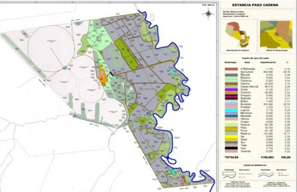 Estancia de 1.160 hectáreas en Caaguazu. Ubicada en Colonia Margarita. Departamento de Caaguazu. Especial para Agricultura, el 70% de la propiedad es aprovechable. Infraestructura: • 547 hectáreas de Agricultura (280 Has con Pivot). • 263 hectáreas de plantación de Eucalipto y Pinos. Silos: • 2 Silos con capacidad de 1.000.000 de kilos cada una, con: Pre limpieza, Tolva, Panel de control y Secador de granos con capacidad de 60 toneladas. Siembra: • Tubo con capacidad para 70 toneladas. • Pre limpieza. • Mesa asimétrica. • Caja doble de granos. • Caja de descarte. • Galpón de 1.000 m2 (20 x 50). Maquinarias: • John Deere 6170. • John Deere 6110. • Uniport 2000 Plus Jacto. • Segador S440 John Deere con plataforma de corte 625F. • Plataforma de de maíz 11/45 GTS Prime. • Plantador Tatu Ultra 13 líneas. • Plantador Valtra 9 líneas. • Carreta granelará JAN TANKER MAGNUS 25000. • Case Farmal 95. • Retro-escavadora Carterpillar 420D. • Niveladora 42 Discos Tatu. • Esparcidor de granos Tatu. Estructuras • 2 Galpones para almacenamiento de maquinarias e insumos. • Usina de Biodiesel. • Fabrica de Ração con capacidad de 1 Ton/hora. Balanza para camiones. • Corral. • Caballeriza. • Casa Patronal. • 3Casas para empleados. Precio de venta: US$. 10.000.000.- (A tranquera cerrada)