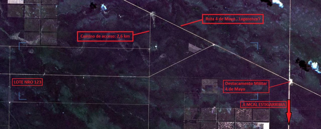 En Venta 4.000 has. Zona 4 de Mayo - Departamento de Boquerón Ubicación; Colonia Soldado Guarani(zona 4 de Mayo) A 190 kms.de Mcal.Estigarribia, por el camino que va a La Gerenza. 28 kms de camino perímetrales. 21 kms.de Alambrado perímetral, faltan 7 kms.en uno de los costados para cerrar el perímetro.. Camino interno que divide la propiedad en el medio. Casa tipo rancho. Señal de Tigo e Internet. Monte virgen con abundante Palo Santo, Coronillo y Quebracho Blanco. Apto para agricultura(Soja, Algodon, Maíz, Chia,etc.) Precio; 550US p/has. Conversable.